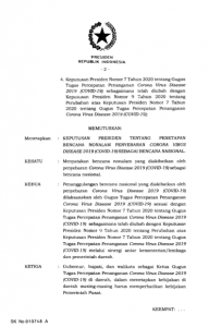 Untuk poin kedua dijelaskan bahwa penanggulangan bencana nasional yang diakibatkan oleh penyebaran Covid-19 dilaksanakan oleh Gugus Tugas Percepatan Penanganan Covid-19 melalui sinergi antar-kementerian/lembaga dan pemerintah daerah.
