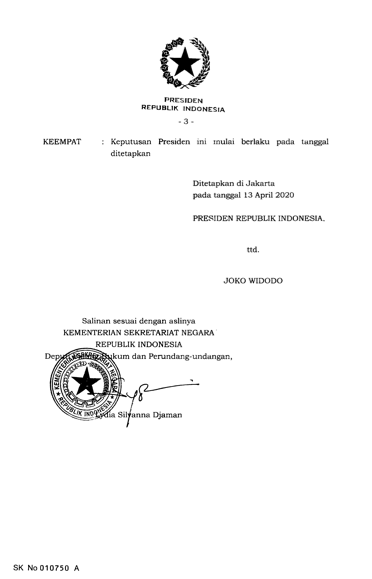 Keppres itu diteken Jokowi pada Senin (13/4/2020) dan telah diunggah di situs web resmi Setneg.go.id.