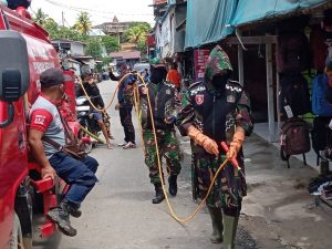 Terus Bersinergi Putus Mata Rantai Covid 19 TNI-Polri Dan Muspika Terus Semprot Disinfektan Di Pemukiman Dan Fasum