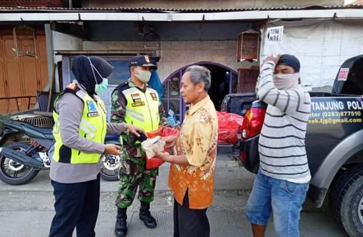 Bakti sosial selama satu jam (16.30-17.30 WIB) oleh anggota Koramil dan Polsek Tanjung ini juga mensosialisasikan tentang cara hidup sehat dalam memutus mata rantai penyebaran virus corona/covid-19 khususnya di wilayah Tanjung.