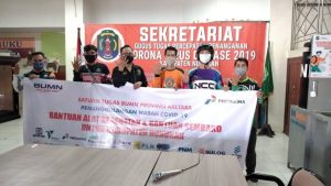 Bantuan diserahkan oleh perwakilan BUMN Rudi Jeje Ajusman kepada Bupati Nunukan Hj. Asmin Laura Hafid yang sekaligus merupakan Ketua Gugus Tugas Percepatan Penanganan Covid – 19 Kabupaten Nunukan di Sekretariat Gugus Tugas Percepatan Penanganan Covid – 19 Kabupaten Nunukan, Kamis (21/5).