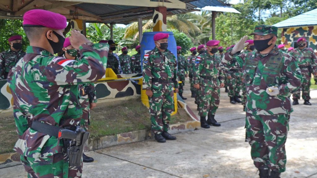 Kedatangan Danguspurla Koarmada II di Pos Kotis Satgas Marinir Ambalat XXV disambut langsung Komandan Satgasmar Ambalat XXV Kapten Mar Shobirin, S.S.Than.