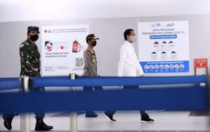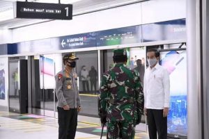 TERASNKRI.COM | Jakarta – Presiden didampingi Panglima TNI, Kapolri dan Gubernur Provinsi DKI usai melihat secara langsung pendisiplinan protokol kesehatan agar masyarakat bisa melaksanakan kegiatan dan aman terhadap Covid-19, di Stasiun MRT Bundaran Hotel Indonesia, Jakarta Pusat, Provinsi DKI Jakarta, Selasa (26/5).