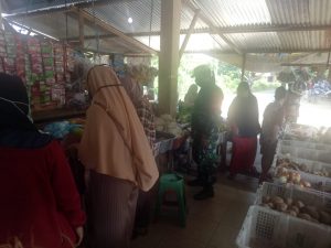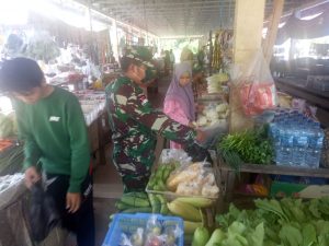 Terapkan Disiplin Protokol Kesehatan Babinsa Koramil Lumbis Datangi Pasar Tradisional