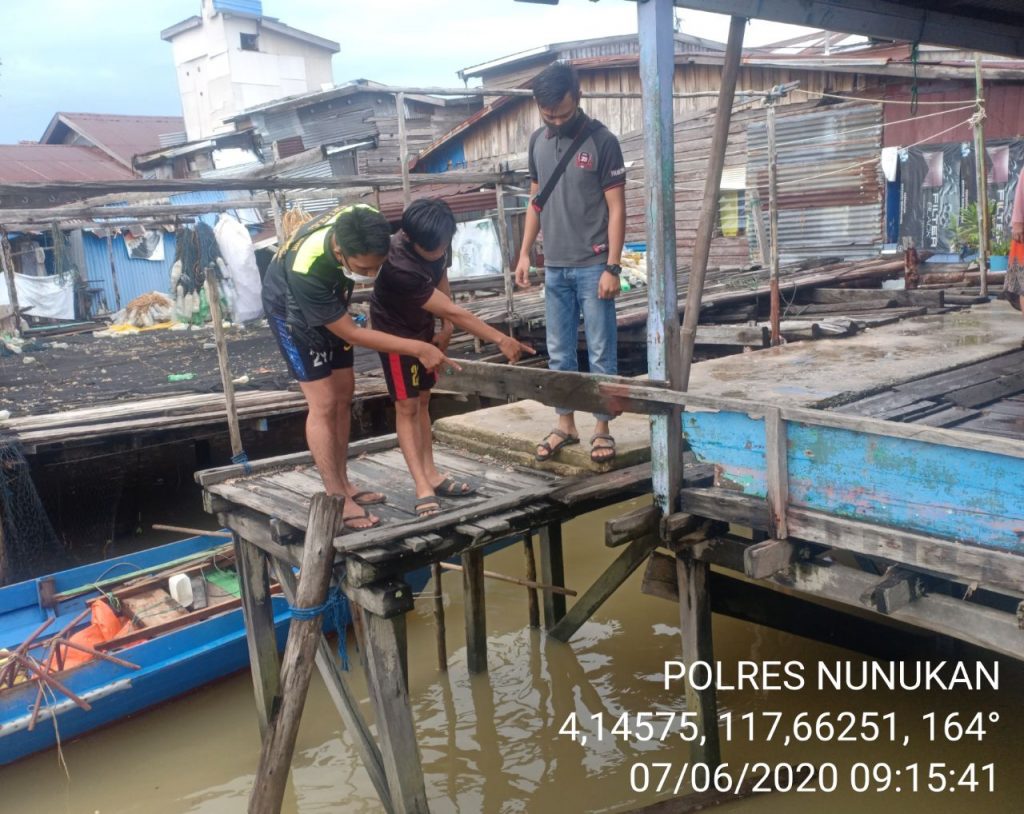 TERASNKRI.COM | Nunukan – Seorang bocah berusia 4 tahun, bernama Muhammad Fajar Aswat buah hati pasangan Mustaking (30 thn) dan Nurtang (30 thn) warga RT. 11 Jl. Manunggal Bhakti Kel. Nunukan Timur Kab. Nunukan, ditemukan telah meninggal dunia mengapung dibawah kolong rumah Arbain di Jalan Manunggal Bhakti RT. 11 Kel. Nunukan Timur Kab. Nunukan, Minggu (7/6/2020)