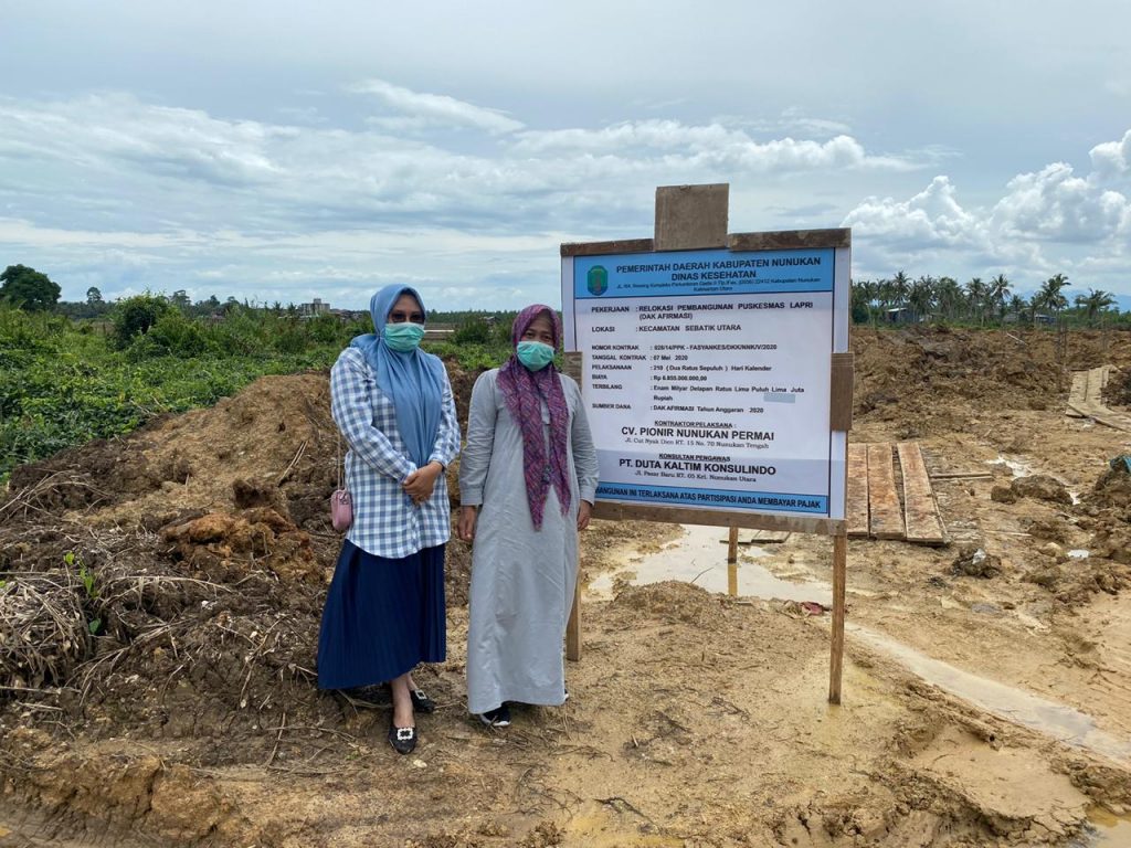 Anggota DPRD Kab. Nunukan Hj. Nadia (Berkacamata) dan Hj. Nursan, SH dilokasi Pembangunan PKM