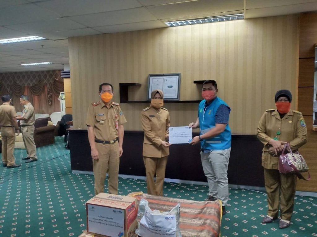 Secara simbolis bantuan diserahkan oleh Manajer ULP Nunukan Rachmad Adi Widodo kepada Bupati Nunukan Hj. Asmin Laura Hafid selaku Ketua Gugus Tugas Percepatan Penanganan Covid – 19 Kabupaten Nunukan, di Kantor Bupati Nunukan, Senin (8/6).