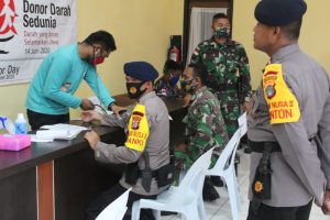 Sebelum diadakan kegiatan donor darah dilakukan pengecekan tensi kepada peserta donor darah TNI dan Polri dimana hanya 36 personil yang bisa melakukan donor darah
