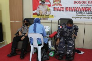 Donor darah dalam rangkaian Hari BHAYANGKARA ke-74 diikuti oleh Personil TNI dan Polri yaitu dari personil Kodim 0911/Nnk sebanyak 10 personil, Lanal Nunukan 10 personil, Satgas Pamtas Yonif 623/Bwu sebanyak 10 personil, Brimob Kompi 3 Yon A sebanyak 10 personil dan Polres Nunukan 15 personil
