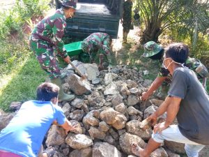 Dengan tetap mperhatikan dan menjalankan protokol kesehatan, anggota Kodim Nunukan dengan masyarakat bahu membahu mengerjakan setiap sasaran fisik yang ditargetkan, hal ini dapat dilihat dilapangan saat TNI dan masyarakat saling bekerjasama memecahkan batu untuk pondasi pembangunan jembatan, jembatan yang akan dibangun berukuran 5 x 1,5 meter sebanyak 4 unit untuk memperlancar aktifitass masyarakat khususnya desa Makmur.