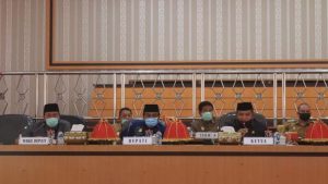 TERASNKRI.COM | Dengan menerapkan protokol kesehatan, Bupati Bone Dr. H. A. Fahsar M Padjalangi, M.Si. didampingi wakil Bupati Bone Drs. H. Ambo Dalle, M.M, menghadiri rapat paripurna DPRD Bone di ruang paripurna DPRD Bone, Selasa 23 Juni 2020