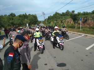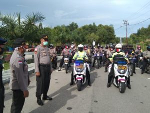 Kapolres Nunukan AKBP Saiful Anwar,Sik yang di Wakili Waka Polres Nunukan Kompol Imam Muhadi,SH,MH dalam acara pelepasan Personil yang mendistribusikan Bantuan Sembako