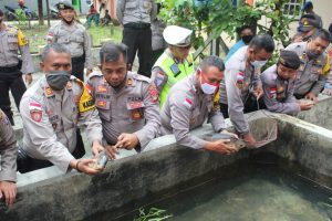 Polres Nunukan pada hari ini Kamis, 9 Juli 2020 Pukul 10.00 WITA melaksanakan panen ikan tawar jenis Ikan Nila dan Gurami sekaligus juga menebar benih ikan tawar dan udang.