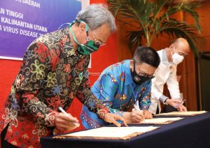 TERASNKRI.COM | SAMARINDA – Gubernur Kalimantan Utara (Kaltara) Dr H Irianto Lambrie mewakili Pemerintah Provinsi Kaltara melakukan penandatanganan perjanjian kerjasama (PKS) dengan Kepala Kejaksaan Tinggi (Kajati) Kalimantan Timur (Kaltim) Deden Riki Hayatul Firman tentang Penyelamatan Aset dan Penerimaan Negara/Daerah. Pada kesempatan sama, Gubernur juga menandatangani nota kesepakatan antara Pemprov Kaltara dengan Kajati Kaltim dan Kepala Badan Pengawasan Keuangan dan Pembangunan (BPKP) Perwakilan Provinsi Kaltara R Bimo Gunung Abdulkadir tentang Pendampingan dan Pengawalan Akuntabilitas Dana Penanggulangan dan Pencegahan Covid-19 di Provinsi Kaltara.