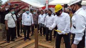 TERASNKRI.COM | Nunukan – Bertempat di Jalan Bhayangkara RT XII Desa Sei. Nyamuk Kecamatan Sebatik Timur, Ka Bais TNI Marsekal Madya Kisenda Wiranatakusumah melakukan pemancangan tiang tanda dimulainya pembangunan mess Bais TNI, Jumat (24/07/2020)