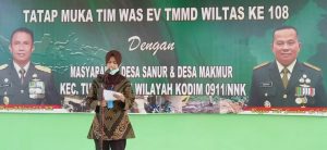 Hal itu disampaikan Legowo saat acara Tatap Muka Tim Wasev TMMD Ke – 108 Tahun 2020 dengan Pemerintah Kabupaten Nunukan dan tokoh masyarakat di Kecamatan Tulin Onsoi, Kamis (24/7). Bupati Nunukan Hj. Asmin Laura Hafid, Danrem 092 Maharajalila Brigjen TNI Suratno, Dandim 0911 Nunukan Letkol Czi. Eko Pur Indriyanto, dan tokoh masyarakat hadir dalam acara tersebut.