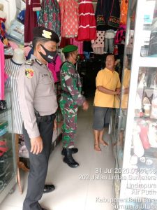 Demikian juga Tim patroli gabungan TNI – Polri juga peduli kepada masyarakat Batu Bara hingga berikan saran dan masukan kepada masyarakat, untuk selalu gunakan masker supaya tidak terinfeksi Covid-19.