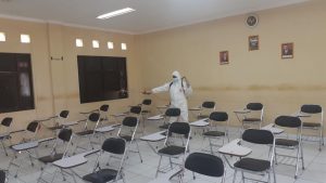 Selain melaksanakan rapid test, Setukpa Lemdiklat Polri juga melakukan penyemprotan desinfektan di seluruh tempat fasilitas pendidikan meliputi kelas, tempat ibadah, seluruh gedung pertemuan dan fasilitas lain yang ada disetukpa terutama yang sering dilalui oleh seluruh personel, siswa maupun tamu yang berkunjung.
