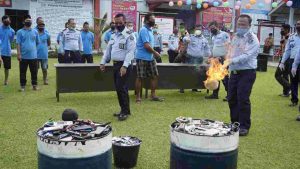 Maju A.Siburian juga menambahkan, barang terlarang tersebut yang merupakan hasil razia dari petugas Satgas Kamtibmas dan P4GN. “Barang terlarang ini hasil razia yang dilakukan selama 6 bulan atau per semester.”.