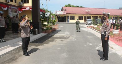 Upacara dilaksanakan dengan menerapkan Protokol Kesehatan dengan memakai masker dan menjaga jarak.