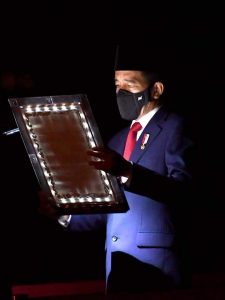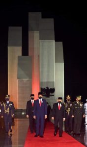 TERASNKRI.COM | Jakarta – Presiden saat memimpin Apel Kehormatan dan Renungan Suci di Taman Makam Pahlawan (TMP) Nasional Utama, Kalibata, Jakarta, pada Senin, 17 Agustus 2020.