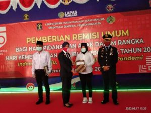 Dalam sambutannya yang disampaikan melalui Video Conference, Menteri Hukum dan HAM Yasonna Laoly mengatakan pemberian remisi terhadap 119.175 narapidana dan anak pada peringatan Hari Ulang Tahun Ke-75 Kemerdekaan Republik Indonesia merupakan bentuk penghormatan negara terhadap hak narapidana yang diamanatkan oleh undang-undang.