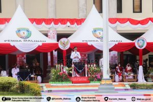 Selanjutnya, Dr. Yansen TP, M.Si menyampaikan amanatnya bahwa tema peringatan HUT RI Ke-75 ini adalah “Indonesia Maju” dan subtema “Dengan Kreativitas Nasionalis Kebangsaan Kita Wujudkan Rasa Bangga Terhadap Produk Menggunakan Produk Lokal Menuju Indonesia Maju Di Kabupaten Malinau”.