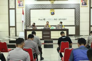 TERASNKRI.COM | Sumut, Serdang Bedagai – Kapolres Serdang Bedagai AKBP Robin Simatupang SH,MHum memberikan arahan dan bimbingan kepada para Kabag, Kasat, dan Perwira, Sabtu (22/8/2020) pagi di Aula Patriatama Polres Sergai.