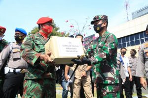 Dalam kesempatan tersebut Pangkoarmada II juga turut serta dalam pembagian sembako yang diberikan secara langsung kepada Ormas Pemuda Pancasila dan dilanjutkan kepada tukang becak, buruh pasar dan santri pesantren.