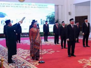 TERASNKRI.COM | Jakarta – Presiden Joko Widodo (Jokowi) melantik  20 (dua puluh orang) Duta Besar (Dubes) Luar Biasa dan Berkuasa Penuh (LBBP) Republik Indonesia (RI) di Istana Negara, Provinsi DKI Jakarta, Senin (14/9).
