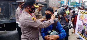Puluhan warga yang tidak mengenakan masker mendapat teguran tertulis dari tim dan nama pelanggar dicatat Sat Pol PP. Selanjutnya tim memasangksn masker kepada mereka.