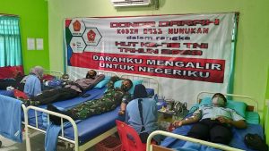 TERASNKRI.COM | KALTARA, NUNUKAN – Sambut HUT TNI ke 75 Kodim 0911/Nunukan bersama instansi lain menggelar kegiatan Donor Darah. Sebagai ungkapan rasa bahagia dan semakin dewasanya instansi TNI dalam mengabdi dan menjaga kedaulatan NKRI Kodim 0911/Nunukan mengadakan Donor darah dalam rangka HUT TNI yang ke 75. Kegiatan berjalan dengan penuh antusias serta tetap berpedoman protokol kesehatan dalam rangka mencegah penyebaran Covid-19.
