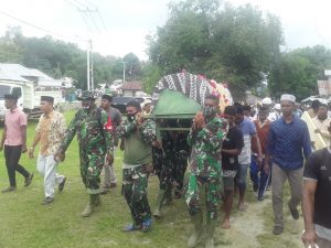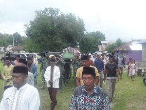 Dalam kesempatan ini, Dan SST II Pelda Ramli Mahulau mewakili anggota Satgas TMMD memberikan santunan dan juga turut melaksanakan fardhu kifayah hingga mengantar jenazah ke pemakaman bersama warga lainnya