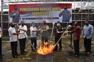 Adapun barang bukti yang dimusnahakan kali ini adalah sejumlah 9,8 Kg yang merupakan hasil ungkap kasus dari 1 buah laporan polisi pada bulan juni 2020 oleh personil Satres Narkoba Polres Tapanuli Selatan.