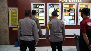 Ketua Tim Was OPS Kombes Ary Donny Setiawan, Sik, MH didampingi Waka Polres, Kabag OPS, Kaposko mengecek Panel Data Posko OPSÂ Mantab PRAJA KAYAN 2020 Polres Nunukan