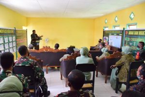 Usai menerima paparan, Pangdam bersama rombongan menuju ke lokasi sasaran TMMD yang berada di Desa Sanleko untuk mengecek secara langsung pembangunan fisik sekaligus memberikan bantuan sembako kepada masyarakat Desa Sanleko.