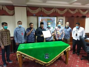 TERASNKRI.COM | Kaltara, Nunukan – Plt. Kepala Balai Prasarana Permukiman Wilayah Kalimantan Utara Johannes Wahyu Kusuma Susanto mewakili Direktorat Jenderal Cipta Karya Kementerian PU PR dan PLT. Bupati Nunukan IR. H.Faridil Murad, SE.,MM menandatangani Berita Acara Serah Terima (BAST) dan Naskah Hibah Aset Barang Milik Negara Sektor Air Minum di ruang kerja Plt. Bupati Nunukan, Jumat (23/10).