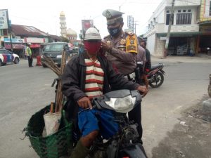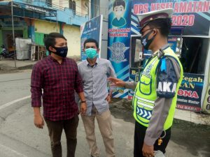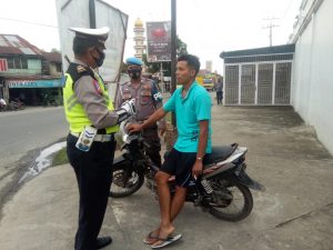 Kasat Lantas AKP Eridal Fitra, S,H, M,H jiga berikan himbauan kepada masyarakat dengan menggunakan pengeras suara. bahwa masyarakat semuanya wajib disiplin dengan anjuran pemerintah tentang mematuhi Protokol Kesehatan.