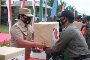 Kaltara, Nunukan – Plt Bupati Nunukan H. Faridil Murad menghadiri acara Pembinaan Fungsi Wilayah Perbatasan Nasional (Binfungstaswilnas) Ster TNI yang dibingkai dalam kegiatan Teritorial Kecamatan Sebatik dalam rangka penanganan, pencegahan, dan meminimalisir penyebaran Covid – 19 di Pulau Sebatik yang dilaksanakan oleh Kodim 0911 Nunukan, Selasa (27/10/2020)