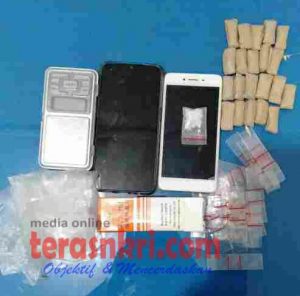 Dari dalam rumah tersebut ditemukan barang bukti satu paket narkotika jenis shabu dengan berat 1.58 Gram, satu buah plastik yang berisi dua puluh satu paket narkotika jenis ganja dengan berat 25.22 Gram, satu Unit timbangan digital, satu buah kotak yang berisi lima puluh plastik klip kosong dan atau buah sendok terbuat dari pipet, dua unit telepon selular.