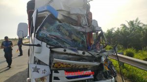 Kecelakaan lalulintas itu terjadi di Jalan Toll JMKT KM 56- 700, tepatnya jalur Tebing Tinggi menuju arah Medan (Jalur B), Desa Jati Mulyo Kec. Perbaungan Kab. Sergai, Selasa (3/11/2020) sekira pukul 07.30 WIB.