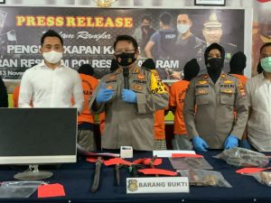 ‘’Kami menangkap 7 pelaku. Enam pelaku spesialis kasus pencurian. Satunya lagi itu yang memprovokasi warga saat petugas melakukan penangkapan di Kelurahan Jempong Baru. Mereka ini beraksi di 67 TKP dari tahun 2019,’’ ungkap Kapolresta Mataram, Kombes Pol Guntur Herditrianto, Jumat (13/11/2020).