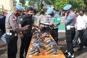 Acara tambahan Bid Propam dipimpin Kompol Beny Catut Waluyo bersama anggota melaksanakan pemeriksaan senjata api bagi anggota yang memegang senjata api kegiatan pemeriksaan senpi untuk mengecek keamanan, kebersihan senpi yang digunakan anggota dalam menjalankan tugas kepolisian
