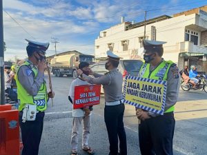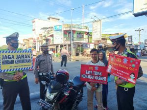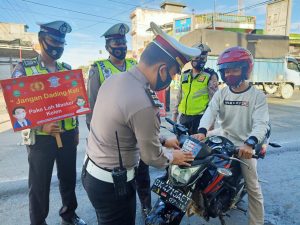 Himbauan yang diberikan kepada pengguna jalan dan masyarakat disekitar untuk selalu mematuhi protokoler kesehatan yang sudah diterapkan oleh pemerintah dengan 3 M (Memakai Masker, Mencuci Tangan serta Menjaga Jarak) supaya dapat terhindar dari penyebaran Covid-19.
