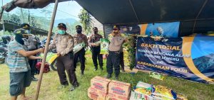 Terpantau di Posko Bantuan Lapangan Kamar Kajang Kecamatan Candi Puro Kabupaten Lumajang tampak bantuan sosial dari Kabaharkam Polri Komjen Pol Agus Andrianto.