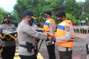 Kapolres mengingatkan untuk wilayah perairan agar petugas saat membawa, mengawal dokumen kotak suara beserta logistik lainya agar tetap terjaga aman selama perjalanan sampai dengan ditempat tugas, pastikan Alat Pelindung Diri seperti Life Jacket harus di pakai saat menaiki transportasi laut maupun sungai