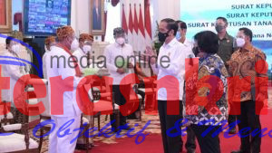 TERASNKRI.COM | JAKARTA – Presiden Joko Widodo pada Kamis, 7 Januari 2021, menyerahkan surat keputusan (SK) untuk Hutan Sosial, Hutan Adat, dan Tanah Obyek Reforma Agraria (TORA) se-Indonesia. Penyerahan dilakukan kepada 30 perwakilan penerima yang hadir terbatas di Istana Negara, Jakarta, dan kepada penerima lainnya yang mengikuti acara secara virtual di 30 provinsi.