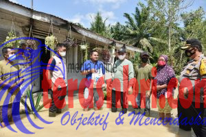 Bupati Batu Bara dalam tinjauannya menyalurkan bantuan langsung kepada warga korban banjir berupa paket sembako.