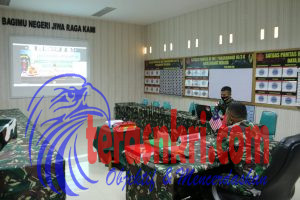 Dansatgas Pamtas RI-Malaysia Yonarhanud 16/SBC mengikuti Video Conference dan Coffee Morning bersama Bupati Kabupaten Nunukan