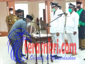 TERASNKRI.COM | Maluku, Namlea – Bupati Kabupaten Buru Ramly Ibrahim Umasugi S.PI, MM mengambil sumpah dan lantik lima pejabat Kepala Desa yang digelar di Aula Kantor Bupati Buru Jalan Danau Rana, Kecamatan Namlea, Kabupaten Buru Senin ( 25/2/2020).